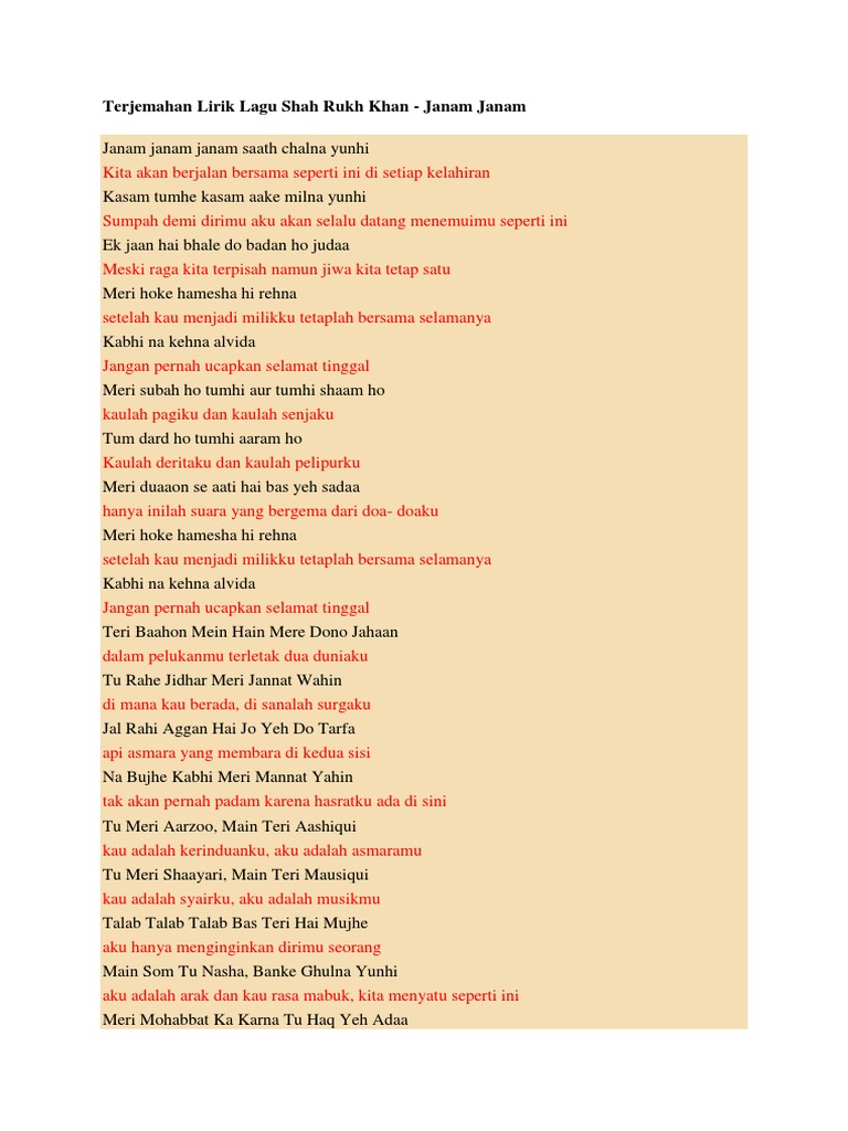 Lirik Lagu Janam Janam Dan Terjemahannya Wattpad