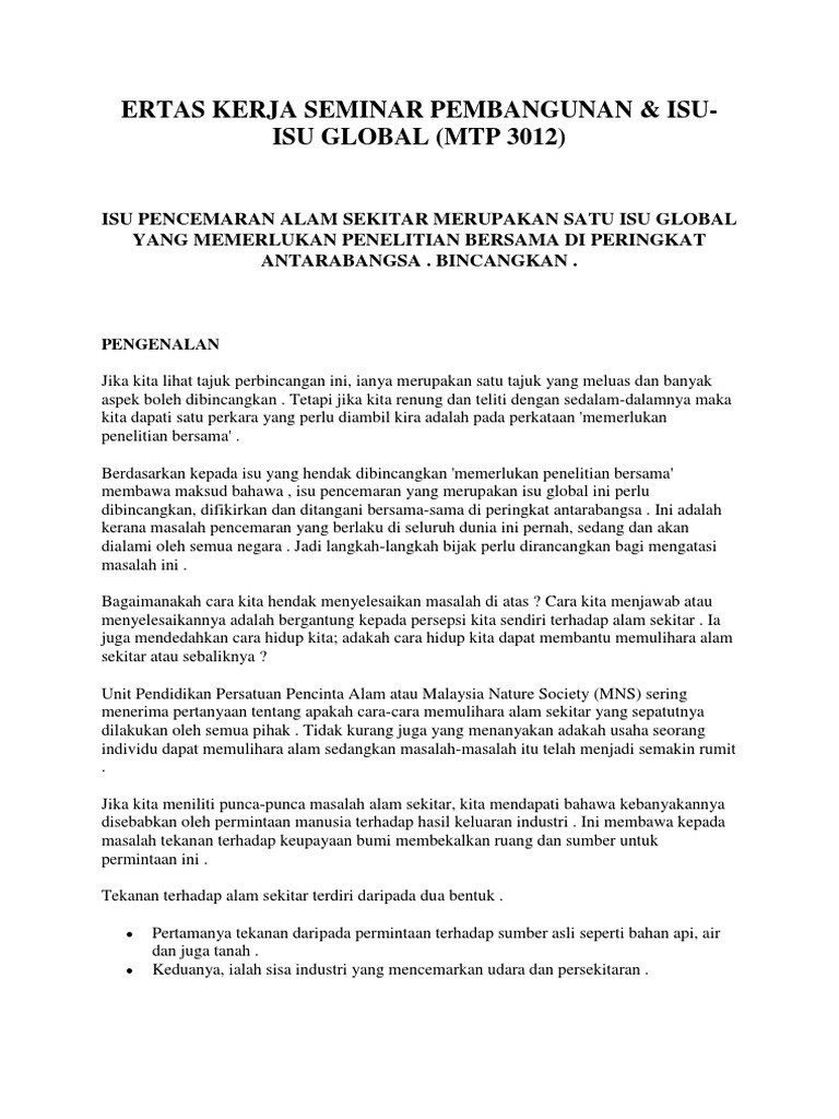 Isu Pencemaran Alam Sekitar Merupakan Satu Isu Global Yang Memerlukan Penelitian Bersama Di Peringkat Antarabangsa Pdf